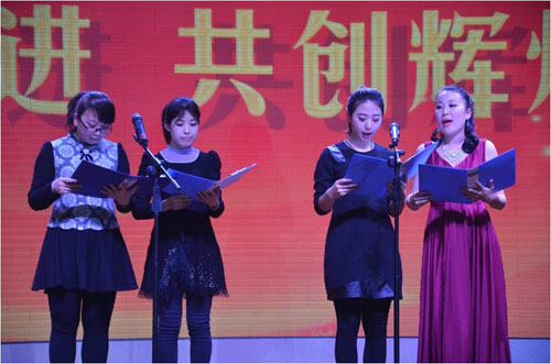 喜慶歡快的開場舞拉開了聯(lián)歡會的序幕,首先,總經(jīng)理陳總致新春賀詞,表達了對全體員工的謝意和祝福,希望大家再接再厲,再創(chuàng)佳績。聯(lián)歡會亮點紛呈,精彩不斷,員工自導自演的小品《大話地主》、《大力膠》構思巧妙,幽默風趣,贏得了觀眾的熱烈掌聲;詩朗誦《勇者無懼,海闊天空》激昂向上,振奮人心;歌曲《我的好兄弟》、《365個祝?!烦懥舜蠹倚闹械淖T负拖M?hellip;…聯(lián)歡會現(xiàn)場祥和而熱烈,掌聲、笑聲、歡呼聲不斷,互動游戲及幸運抽獎更是將現(xiàn)場氣氛推向高潮。