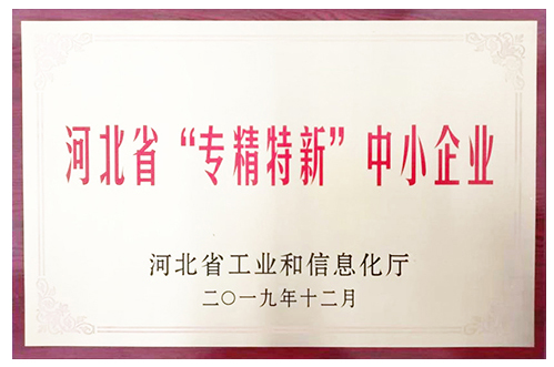 2019年,公司順利通過(guò)河北省 “專精特新” 中小企業(yè)認(rèn)定,榮獲河北省“專精特新”中小企業(yè)榮譽(yù)稱號(hào)。